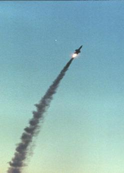 Project X-15 ascends into the early mourning sky powered by an Aerotech I200W RMS rocket motor (right hand picture).